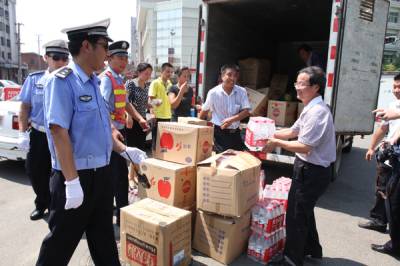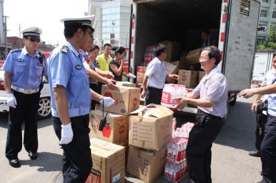 慰问高温中的公安交警8月4日,随州市总工会慰问在高温下辛勤值勤的交警,送上了矿泉水、人丹、风油精、毛巾、西瓜等防暑降温物品。(本报视界网杨文明摄)