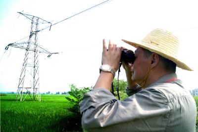 7月29日,夏日的阳光像火一样肆无忌惮地炙烤着大地。在应城市与天门市交界的胡市镇新民村田间地头,两个身着灰色工装的电力职工身背工具,汗流浃背,认真地察看线路……当日,与孝感供电公司输电工区员工来到工作一线,亲身体验了迎峰度夏巡线工作。年纪大的叫黄河,今年49岁,是孝感供电公司输电工区党总支书记;年轻点儿的叫陈明,是输电工区维护班班长。”工具包、安全带、望远镜、红外测温仪、砍刀,有20多公斤,这是每名巡线工人的全部装备。最近持续高温,很多地方都出现负荷超载,我们今天必须把线路全巡视完。”正举着望远镜观测线路的黄河脸颊被晒得通红,他边观察,边回答记者的问话。”每天这样在野外巡线很辛苦啊!”感叹。”说不苦那是假的,但要保证居民用上放心电,再苦再累也得干好!”黄河说。”高温天气巡线,最大的挑战是体力不支,容易中暑,像这种天气,我一天能喝掉七八瓶水,就这样还总觉得口渴。”这是一个特殊的群体,在孝感供电公司有着30名这样的巡线员,是他们的辛勤付出,保障了线路的安全,及时消除线路安全隐患,才保障了千家万户的供电。