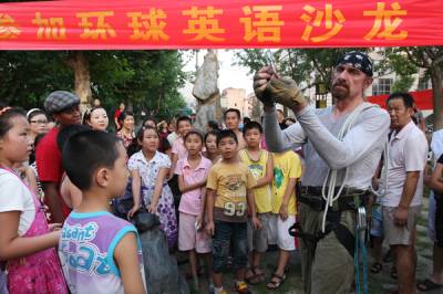 市民向老外学英语8月3日傍晚,随州城区神农公园里,一些英语爱好者兴致勃勃与”老外”英语交流对话。据悉,城区一英语培训学校骋请外籍英语教师,暑期他们走出室外,乐当英语志愿者,与市民交流英语对话活动。本报视界网杨文明摄