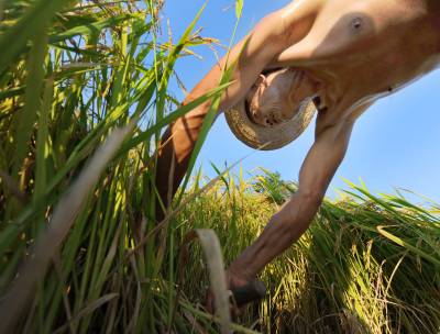 4日下午,武汉市黄陂区罗汉街金寨村一组的吴汉启老农冒着酷暑抢收早稻。据该街负责人介绍,上月的洪灾,使本地2600多亩夏季作物受损严重,目前,农民们及时抢收成熟作物,抢时间播种晚稻、蔬菜等秋季作物。记者郑元昌摄