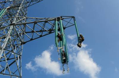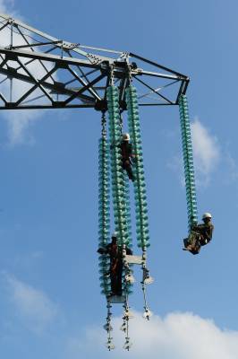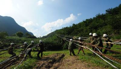 三峡地下电站至荆门换流站500KV线路工程,起于三峡大坝右岸,止于湖北省荆门市。该输电线路沿线为崇山峻岭,很多地方没有公路可用,施工难度大,为确保今年年底全面竣工,工人们冒着40度的高温作业,抢工期,确保按时完成施工进度。