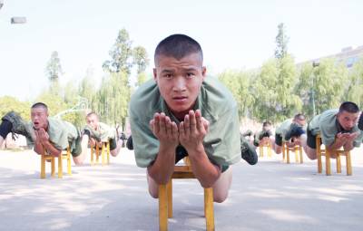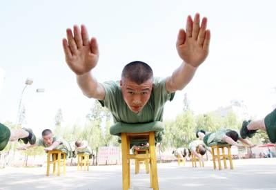 > 武警湖北总队一支队数百名”旱鸭子”岸上练游泳