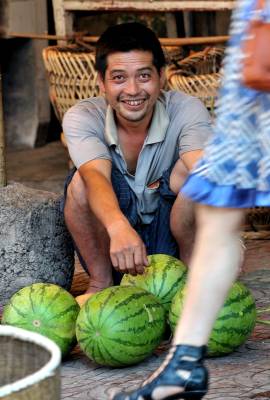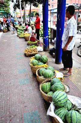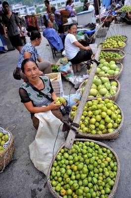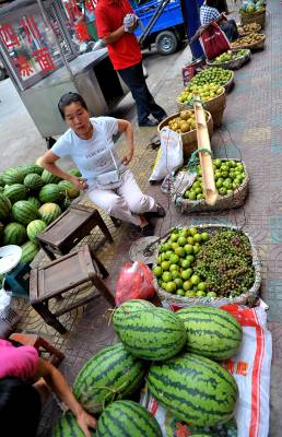 5日,宣恩县珠山镇民族路上,果农一字排开出售自家产出的西瓜、黄金梨、香瓜等水果。自上世纪90年代以来,该县针对区域内海拔300-2000米不等的实际,分区域布局黄金梨、贡水白柚、烟叶等产业,目前面积已近40万亩,拥有年产值过亿元的龙头企业2家,过5000万元的2家。茶叶、梨等产品已通过了欧盟有机食品认证,并远销欧盟及东南亚各国。本报视界网宋文摄