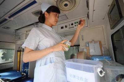 救护车专门配备防暑药箱备战高温