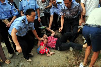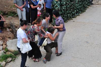 8月5日,湖北省郧县出动公安局,执法局,民兵配合柳陂镇政府成功解决了挖断岗村2组几户农民阻扰在该组山里施工公墓案.郧县柳陂镇与车城十堰市相交界,市县规划对接后在柳陂镇挖断岗村2组山里施工一处公墓,柳陂镇政府与占地的农户经协商签订了赔偿协议,但当施工机械进场施工时遭到了这几户签订了赔偿协议农户阻扰不让机械进入工地,在又满足这几户农户的4项要求后还不让机械进入工地,于是8月5日郧县出动公安局,执法局,民兵配合柳陂镇政府成功保护工程机械进入工地,当场抓获2名带头闹事的青年男子.图为公安干警和执法局城管队员强行将阻扰者带离公路保障机械进入工地时的情景.周家山杨春灵摄湖北省郧县城建监察大队电话13872840078邮编442500