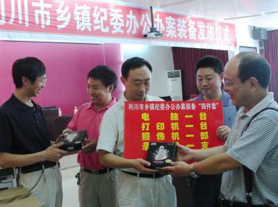 利川市乡镇纪委喜获”四件套”8月5日,利川市纪委在该市警示教育基地举行仪式,给乡镇纪委统一发放办案所需装备。利川市实施筑牢农村党风廉政建设基础工程,日前从财政划拨专款为14个乡镇纪委配备”四件套”(电脑、打印机、照像机、录音笔),以提升乡镇纪委办案水平,加强乡镇纪委的规范化建设。图为利川市乡镇纪委办公办案装备发放仪式现场。(刘洪浩刘亚萌摄)