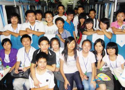 【罗超】暑假期间,湖北襄樊各地中学生积极开展体育、书法、阅读、旅游等活动,强体质,长知识,开眼界,励壮志,最大限度地丰富了假期生活。8月4日,61名来自枣阳某中学高二的同学们在老师的带领下,逛北京看名胜(故宫、颐和园、鸟巢等),访名校(清华大学)亲体验,爬长城树自信,充分发挥了团队合作精神,带着愉悦的心情满载而归。图为部分同学在K280次旅客列车上兴奋地合影留念。