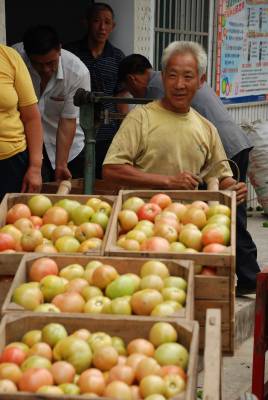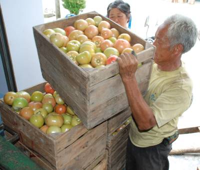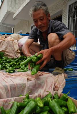 8月5日,土家族菜农正在出售种植的高山无公害蔬菜。近年来,五峰土家族自治县利用高山气候,引导农民种植蔬菜,全县高山无公害蔬菜基地面积突破10万亩,是湖北省高山无公害蔬菜生产基地,五峰蔬菜畅销上海、广州等20多个城市,年给当地农民带来近两亿元现金收入,成为土家族农民脱贫的支柱产业。