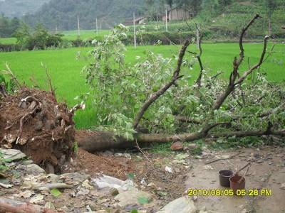 图文:遭受强暴风袭击5日凌晨2时左右,郧西县店子镇小坝河村境内雷电交加,狂风大作,致使该村11家农户25间房屋遭受不同受损,房皮被掲,有的房屋被大树倒下砸坏,瓦砾遍地,数株大树被狂风连根拔起,300亩玉米被狂风吹倒,直接损失达20余万元。由于村干部及时组织村民转移,幸没造成人员伤亡。(本报视界网徐雁初摄)