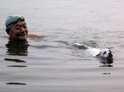 连续的高温天气让人感觉酷热难耐,清晨,一群游泳爱好者就来到黄石磁湖游泳消暑,一位老人把他的爱犬也带到湖里洗澡游泳,演绎了一场人和宠物情深意重的真情故事。
