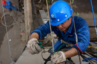 8月5日晚9点多,r入夏以来的一场雷电把湖北大冶有色公司内保中心监控系统的线路打断,该公司动力厂获知消息后,一大早组织人员抢修,至第二天中午11点,恢复了大冶公司70多个要害部位的电子视频监控。图为动力厂员工正在抢修线路。郭小勇摄单位:湖北黄石新下陆区大冶有色公司宣传部邮编:435005核稿:15971544373
