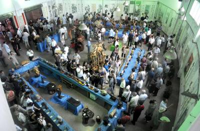 6日,黄石市迎接首届矿冶文化旅游节书法、绘画、花卉奇石艺术品联展在该市老干局举行。当日,共有400余件(幅)书画艺术品展出,联展从8月6日起持续到22日。黄石市黄石日报摄影部邱孝威摄