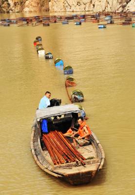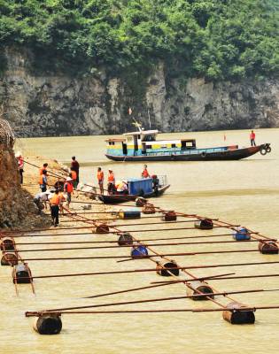 巴东整治非法养鱼网箱还母亲河容颜(图)8月6日,多家执法部门正在巴东县官渡口镇小溪河拆除非法养鱼网箱。自三峡库区蓄水后,巴东溪丘湾、东瀼口、官渡口、信陵等4个乡镇的农民未经审批,在神农溪、东瀼口、链子溪、小溪河等长江支流私设养鱼网箱面积500亩。经过执法部门20多天的宣传整治,网箱面积已清除六成,既保证了母亲河长江水水质不受污染,又维护了航道安全。(视界网签约摄影师梁勇摄)