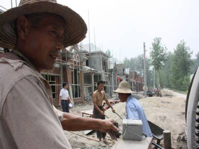 8月6日,南漳县九集镇丁家营村农民正在新建中的50套别墅已完面主体工程,这是该县推进新农村建设的一个缩影。去年4月,九集镇作为全省新农村建设示范点,该县按新农村建设总体要求,在全县28个村推进市、县级新农村建设示范区,共有2000多户实施了建沼气池、改水、改厨、改厕、改圈的”一建四改”。通讯员张兴江/摄