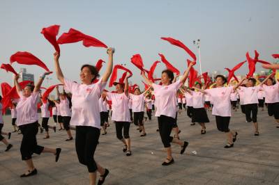 8月8日,仙桃市老年体育协会组织千名体育爱好者在市体育广场举行全民健身展示,迎接全民健身日。吴三红摄