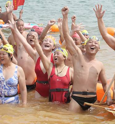 > 全国各地1500名泳友昨横渡漳河