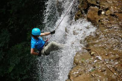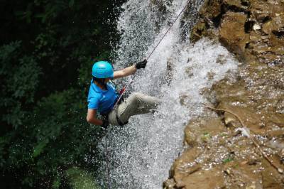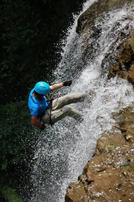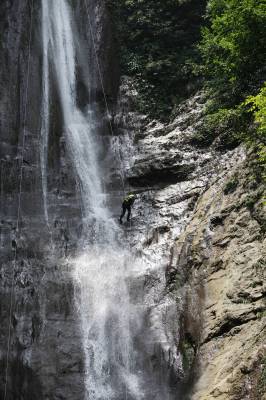 三峡首届溪降节在泗溪举行8月8日,一位女选手正在落差80多米的瀑布参加溪降比赛。当日,三峡首届溪降节在秭归泗溪举行。吸引来自北京、湖北、湖南、河南等地的16支户外运动队伍,220名探险爱好者参加瀑降、岩降、溜索等项目的比赛和体验活动。本报视界网黄翔摄相关连结:溪降(也叫”瀑降”。由上游向下游,由瀑布主体沿绳下跃,或顺水滑降。由于长期被瀑布冲刷的石头很滑,长满青苔,再加上溪水对下降者的冲击会影响判断力,所以,溪降比普通的岩壁下降更富变化,更有挑战性。