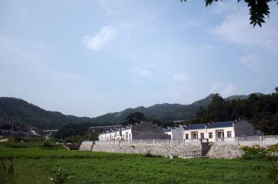 蓝天白云青瓦。这个仿明清建筑风格的小山村(8月8日摄),是武汉市黄陂区长岭街绿林村游家塆的拆迁户们盖起的还建房。为了少占用可耕地,在这里承建石武客运专线的中铁十一局集团,主动利用20000多方隧道弃砟,依山傍水填筑了16亩多宅基地,并无偿投入了50多个机械台班进行平整碾压,为20家拆迁农户提供了盖还建房的用地,曾经住着简陋民房的村民,目前已有15户人家乔迁新居。