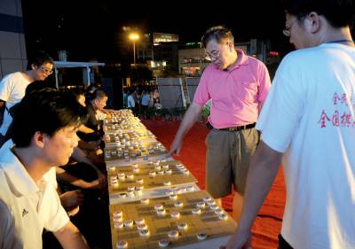象棋大师柳大华来黄献艺8日晚,象棋大师柳大华(右二)在黄石市工人文化宫与该市八位象棋”高手”同时下棋。当日是庆”全民健身日”全国棋牌项目万人同赛的日子,柳大师亲临该市下棋献艺,吸引了许多象棋爱好者观看。黄石市黄石日报摄影部邱孝威摄电话:13807232603邮编:435002