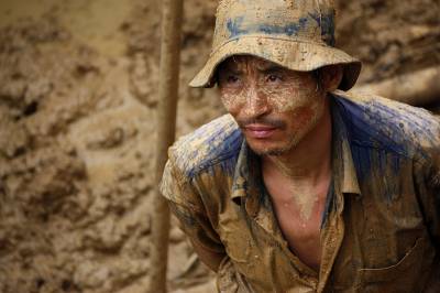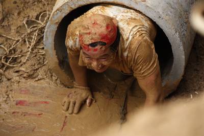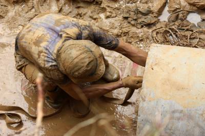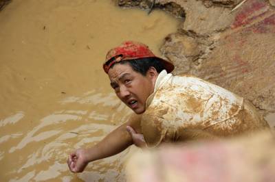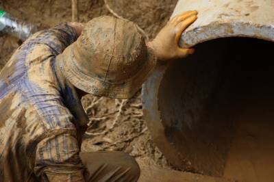 今年黄冈市大力发展老城区道路刷黑改造与排污管道改造工程,任务相当艰巨。图为在排污管道工地施工的城市建设者。