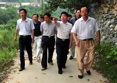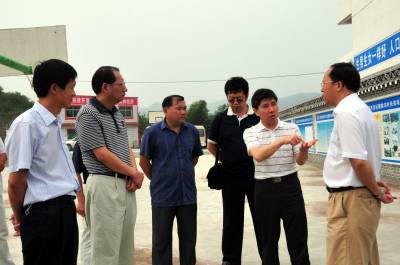 8月8日上午,湖北省扶贫办主任杨朝忠一行在参观了郧县经济开发区樱桃沟村村容村貌和农业观光农田项目,果树项目,农家乐项目后,要求郧县多培训有一技之长的农民工,让农民工出外打工,本地就业,科学种田都要多掌握几门技术,成为经济发展的主力军和技术能手.随后杨朝忠一行还参观了郧县经济开发区建设情况和佳恒液压机械有限公司生产车间.图为湖北省扶贫办主任杨朝忠(右二)正在听取郧县县委书记柳长毅(右一)介绍樱桃沟村发展情况时的情景.周家山罗静摄湖北省郧县城建监察大队电话13872840078邮编442500