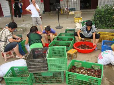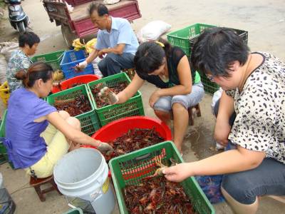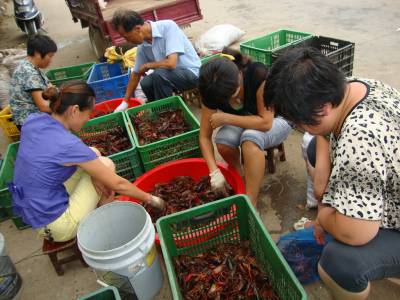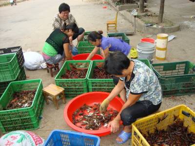 日前,每天早上,在汉川市麻河镇的各龙虾收购点就开始整理、装箱,将收购的新鲜生态小龙虾交给龙虾经纪人,托运到省内外各大水产品批发市场销售,其产品供不应求。图为8月7日早上,该镇周大平的龙虾收购点正在将龙虾按大小分类,准备装箱托运。通讯员邹开建摄影报道通联:汉川市麻河镇党政办公室电话:13197382491