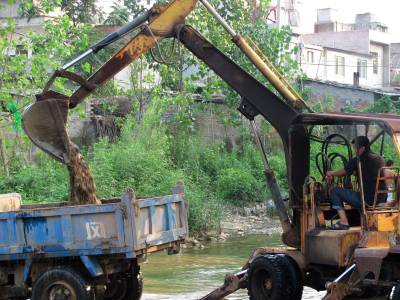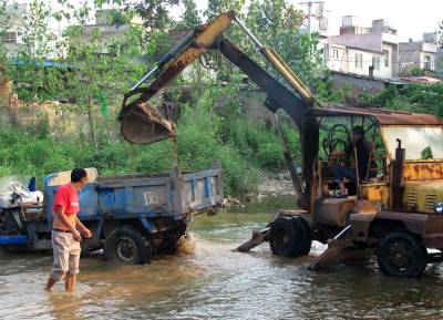 8月8日,郧县刘洞镇利用挖掘机清理江堰河河道污泥砂粒。由于受到今夏的多轮暴雨洪灾袭击,该镇多条河道污泥砂粒淤积,为保证农民安全生产,自今年7月份以来,多次组织人员开展河道清理工作,以确保河道两岸农田的旱涝保收,彻底消除河道安全隐患。