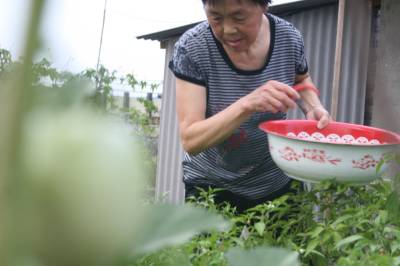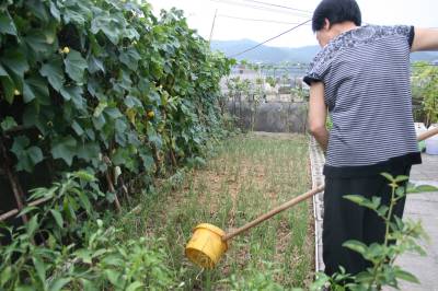 视界网签约摄影师颜义众报道:9日,竹溪县城关居民朱其芝在”开心农场”浇水,收获有机蔬菜。今春,住在顶楼的朱其芝,利用楼顶的空间,自建一个小菜园,种些白菜、黄瓜、辣椒、番茄、茄子、四季豆等时令蔬菜,被孩子们称为”空中开心农场”,她说:”我们家蔬菜完全可自给,这里面种的菜一点化肥不上(施),肥料用的是饼肥,浇水用的是自来水,孩子们说这菜是有机蔬菜呢,特别喜欢吃。”据统计,竹溪县城大约有近500个居民在楼顶开发空中”开心农场”,种植蔬菜。