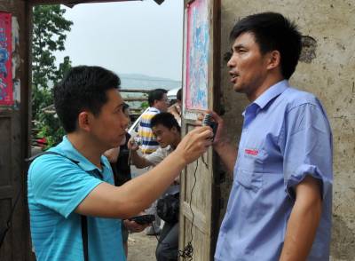 8月9日,新华社,人民日报,中央电视台,中央广播电台等市级以上18家媒体36个栏目及频道43名记者组成的新闻采访团深入南水北调中线工程湖北省郧县的安阳镇和柳陂镇采访即将外迁的移民,在柳陂镇辽瓦村当记者看到11日即将离开家乡迁往随县的195户移民正在搬出家当运到指定地点集中,许多家庭正在拆除自己家房屋时纷纷上前采访,通过实地采访宣传郧县移民舍小家为国家的宗高精神.图为多路记者采访辽瓦村11日外迁村民徐朝新(右)时的情景.图2为记者采访辽瓦村3组村民徐士明(右)时的情景.周家山杨文华摄湖北省郧县城建监察大队电话13872840078邮编442500