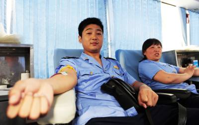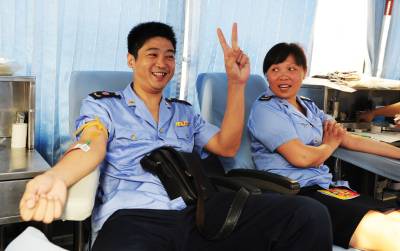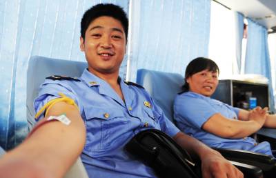 酷暑血慌10日,潜江市工商局干部职工在献血车上献血,这是该局连续12年组织干部职工献血。伏天酷暑,街头采血急剧下降,造成潜江市血站血液告急,该局工会积极倡议职工无偿献血,来自局机关科室、直属分局、城区分局的工商干部表现出关爱生命,大爱无私的奉献精神,纷纷参与无偿献血,当日上午,该局42名干部职工共献血11600毫升。本报视界网吴燕军通讯员彭成烈摄