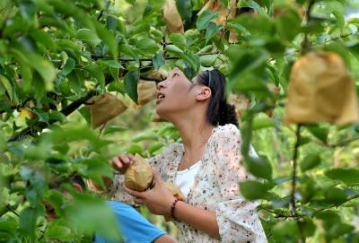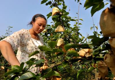 > 有机梨富乡邻:一个梨儿六块多