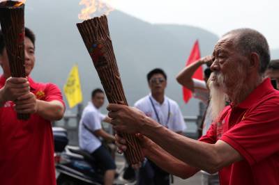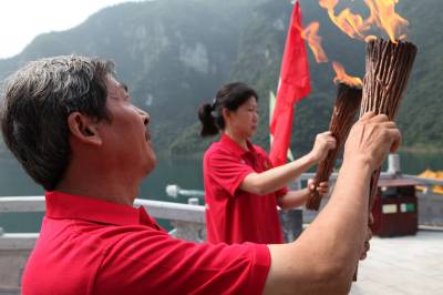 首届红色运动会火把在革命老区湖北长阳传递