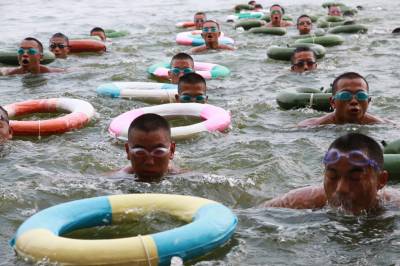 武警某部600余名抗洪勇士”泳”往直前