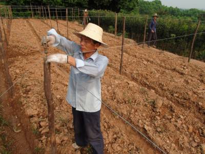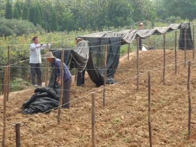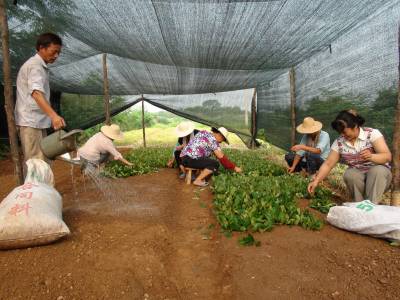 10日,孝昌县周巷镇新龙村苗木大户汤立兰、汤立贵兄弟和雇请的工人正忙着搭建荫棚扦插苗木枝苗。当前正值扦插枝苗时节,持续的高温天气眼中影响了幼苗的成活率,苗农们顶着炎炎烈日搭建荫棚、浇水扦插。(本报视界网肖如义摄)