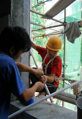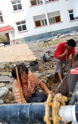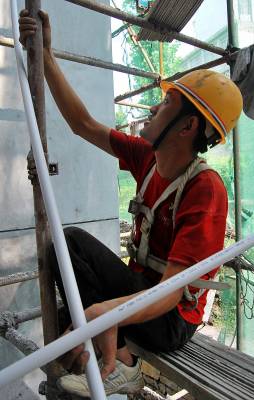 廉租房让贫者安居城关8月11日,在宣恩县廉租房建设工地上,建筑工人们正忙着为第三期的286套廉租房安装水管以及给墙面上涂料等内装修扫尾工作。近年来,宣恩加大对保障性住房的投入力度,不断扩大廉租住房的保障范围,着力解决城镇弱势群体的住房问题,共投入2100多万元用于廉租房建设。据悉,该工程分为三期,第一、二期已有192户低保户入住。第三期的286套预计今年9月底可以入住使用。