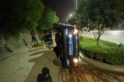 图文:小轿车醉行10米处惊醒”梦中人”