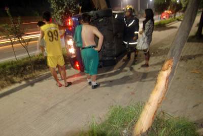 11日凌晨4时许,一对姊妹驾驶一辆小轿车从福银高速十堰东下车后行驶在东风大道上,驾驶车辆的姐姐由于长时间驾驶,姊妹俩已经疲惫不堪,当车辆在经过正和车身厂路段时,驾驶车辆的姐姐忍不住开始打盹。此时,车辆像”醉汉”一样左摇右晃,可车速度依然”可观”。突然,车辆冲向路旁的花坛,车辆穿越花坛后冲向人行道上,在与人行道内侧多颗树木发生碰撞后,在10米处事故车辆侧翻在人行道上。强烈的撞击打开了车内的安全气囊,也惊醒了”睡梦”中的姐妹。事故车辆的轮胎由于激烈的摩擦,侧翻后车内充满难闻的橡胶烟气,被困在车内的两姐妹用脚撑开外侧的一个门,拼命的呼救,并拨打119求助,路过的几名下班职工听到呼救后将姐妹两救出,所幸姐妹没有受到伤害。(本报视界网徐雁初摄)