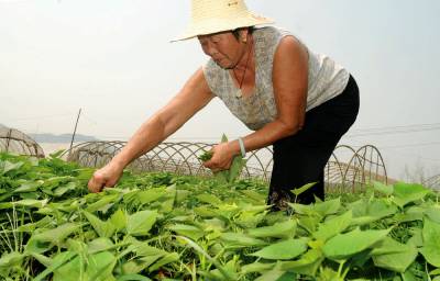 灾后蔬菜抢上市11日,黄石市花湖街办菜家山农民谢春兰正在地里采摘红薯叶尖。据了解,上个月的持续降雨使花湖蔬菜基地大部分蔬菜淹死。谢春兰今年刚从省农科院引进栽种的红薯苗也被淹没,她冒着大雨从水里拔起部分红薯苗抢种在高处的地里。现在,她抢种的红薯叶尖已经开始采摘上市。据市蔬菜办梅再胜介绍,目前本地蔬菜已逐渐上市,蔬菜价格开始回落。黄石市黄石日报摄影部邱孝威摄电话:13807232603邮编:435002