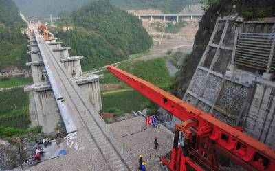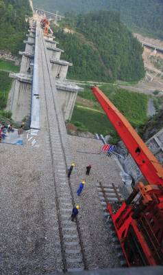 至当日,宜万铁路右线铺轨仅剩百余米合龙,左线离合龙点30公里,预计铁路全线将于8月中旬完成铺轨。宜万铁路东起湖北宜昌,西至重庆万州,全长377公里。宜万铁路是在地质条件极为复杂的艰险山区修建的高标准干线铁路,是目前国内已建和在建铁路中最困难的山区铁路。