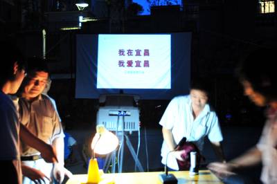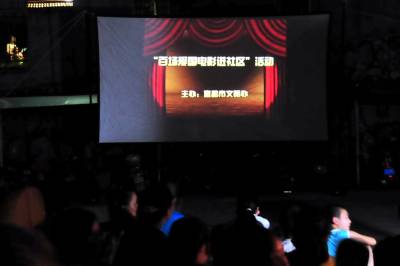 2010年8月11日晚,湖北省宜昌市夷陵区委宣传部组织电影放映队启动”夏日送电影进社区”活动,为社区居民放映文明教育、计生科技等宣传短片和数字电影《惊天动地》等影片,引导广大居民积极参文明城市创建活动,构建和谐文明的社区人文环境。本报通讯员张国荣摄