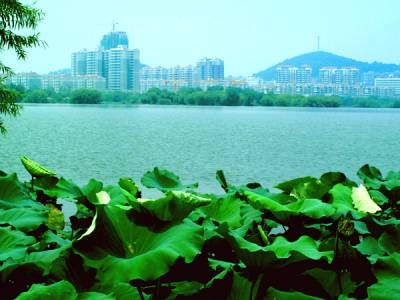 11日,黄石的天气高温闷热,天空灰白一片,但是走在磁湖边,呈现在眼前的仍然是一幅幅美丽的图画,令人流连忘返。