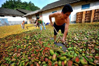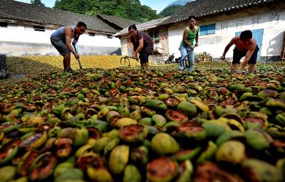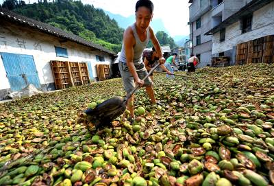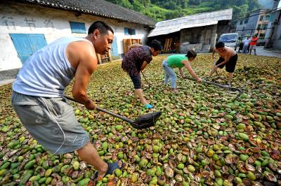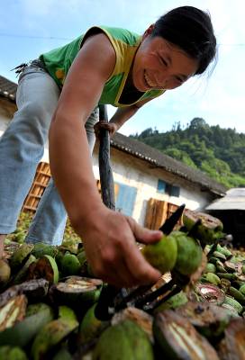 11日,宣恩县长潭河乡甘露村村民在晾晒皱皮木瓜。如今该乡木瓜种植面积达1.5万亩,5年间面积增长了10倍,土苗儿女用实际行动,为拥有近140万亩药材基地的”华中药库”添砖加瓦,药材种植也成为农民增收的主渠道之一。恩施州素有”华中药库”美誉,州内拥有药用植物资源186科、854属、2088种,占全省药物资源的76.16%,比《本草纲目》收录的品种还多196种。中国板党、鸡爪黄连、竹节人参等数十种道地药材在国内外享有盛誉。目前,全州基本形成了医药化工、中成药制剂、饮片加工、医药保健、药材生产和药材营销的龙头企业网络格局,一批优势地道药材、药化原料药材、药食两用绿色药材基地粗具规模。本报视界网宋文摄