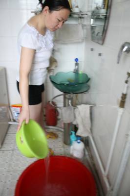 12日晨,竹溪县城关居民周艳梅,把洗脸水储存起来,用来冲而厕所。”7.18”特大暴雨致竹溪县城供水主管道被冲毁,县城新城停水10天,停水过程中,周艳梅把洗脸、洗衣、洗菜等生活用水都储存起来,用来冲厕所,发挥水的最大用途。灾后这一习惯一直保持下来,她告诉笔者,8月份比上个月节约用水3吨。(签约摄影师颜义众)