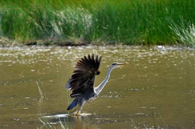 11日,在宣恩县长潭河侗族乡诺西村”仙女池”拍摄的一只不知名的大鸟。此鸟站在池塘里时,感觉其身高在60cm左右,而在展翅时,两翼至少有1米多宽。