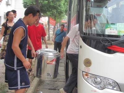 郧县细致安排搬迁移民生活(通讯员:柯常武单位:十堰市郧县安阳镇政府邮编:442515电话:15571900508)8月12日上午,郧县安阳镇的移民包保工作人员正将开水保温桶送上移民搬迁客车。为实现和谐搬迁的目标,郧县对移民搬迁行程中的生活进行了周到地安排,为移民提供营养搭配合理的早餐、中餐和充足的开水。