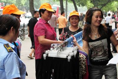 8月12日,十堰市环境卫生管理处退休职工自主成立的义务协管小组在人民路对违规占道、乱设摊位的摊主进行劝说教育,并要求他们撤走摊位。为全力抓好”三城联创”(卫生、环保、文明)工作,市环卫处50多名退休职工自主组织开展了”献余热,促三创”活动。他们担当起了义务协管员,成立了9个小组,分布在城区的9条主干道,积极宣传城市管理的法律法规、文明城市创建政策、文明市民道德规范,制止、处理城市管理中存在的问题。