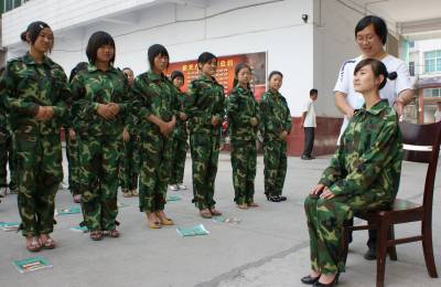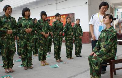 8月12日,学员们正在接受站姿和坐姿训练。当日,巴东县劳动就业管理局在野三关镇开展一次特殊的免费培训,培训的对象为40名贫困家庭子女、社会孤儿和零就业家庭子女。在接下来的3个月内,他们将接受电脑财务、会议服务、餐饮服务与管理等技能。培训结业后,他们将被直接送往中国航天空间技术研究院和美国爱玛客(中国)公司上班,劳动就业部门还将对他们实行2年的就业跟踪服务。本报视界网周光兵摄