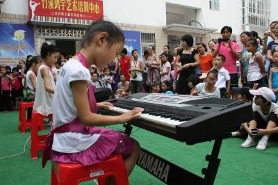 12日,竹溪宏宇艺术培训中心的孩子们表演他们暑期学习的兴趣特长,展示给家长们看,爱到家长们的欢迎。暑假期间,竹溪县城幼儿家长纷纷把孩子送到各类艺术培训班中,培养孩子的特长,同时受艺术熏陶,度快乐暑假。据悉,该县的舞蹈、声乐、器乐、美术等兴趣特长班分暑期集中学习和上学期间的周六、周日学习,学费一个班400到500元之间,非常火爆。(视界网签约摄影师颜义众)