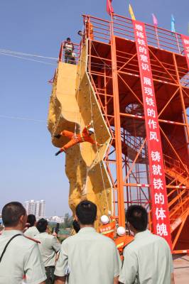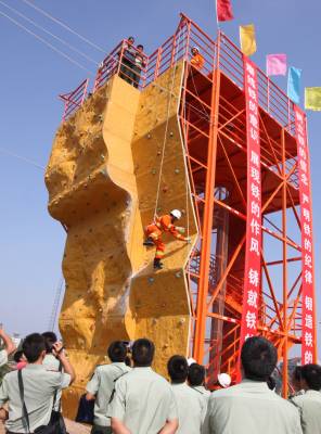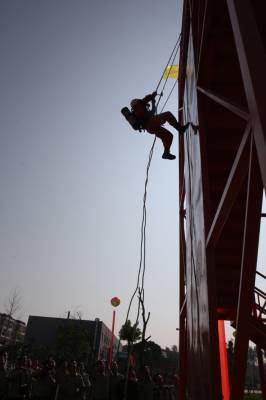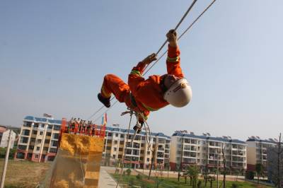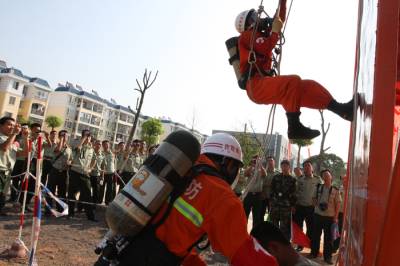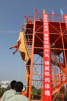 烈日炎炎,铁骨铮铮。8月13日,全省消防部队打造铁军比武项目示范班研讨会在随州举行。当日,随州市消防支队官兵在烈日下开展了一场别开生面的夏季”消防大练兵”实战演练活动。消防官兵现场攀爬横渡、紧急疏散等实战救援技能演练,赢得了在场的数百名企业负责人、人民群众和全省各地的消防代表的一致好评。本报视界网杨文明摄