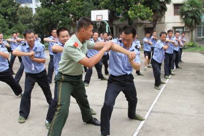 为了提高校园安保队伍素质,确保师生安全,钟祥市对212名中小学幼儿园安保人员进行为期一周的培训,来自防暴武警、消防中队、治安巡警的十多位教官对学员进行了防暴、擒拿格斗、安保器材使用培训和校园安全法规知识讲座。图为8月16日上午,钟祥武警中队的教官正在训练场上指导学员掌握擒拿格斗要领。钟祥市教育局王松钟祥市委宣传部张君/图文
